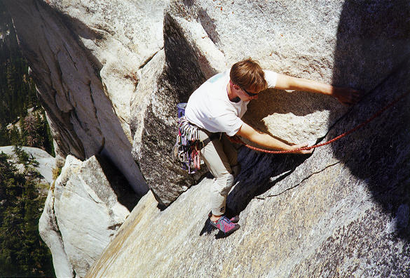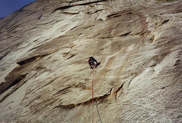 I'd never been to Yosemite. Not as a child, not as an adult. Not for sightseeing or for climbing. Not even for green eggs. It was clear to me that I needed to remedy this. Packing up and heading for Yosemite seemed like a difficult thing, however - finding a partner, getting my gear out there, getting guidebooks, and all the baggage that accompanies such a trip. Unfortunately, by the summer of 1999, I'd been reading the rec.climbing newsgroup for some time, and I'd seen a number of posts from a guy named Karl Baba, who climbed in Yosemite, and guided around the area. Sometimes, a person who had gone climbing with Karl would post a trip report describing the experience, and from all the descriptions, everybody who had climbed with Karl had had an incredible time.