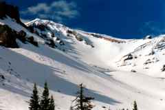 The full moon, by the way, exceeded all expectations. Rarely does one get to take a hike to 8,000' on a big mountain, with no wind, clear skies, and enough moonlight to make headlamps completely unnecessary. Out on the slopes of the Gulch, well above treeline, we pulled out the last of the Expedition Scotch and toasted our friend who couldn't be with us.