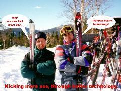 Simon and I kick more ass through superior ski technology. We expect sponsorship any day now. Sugarloaf/USA (Maine), February 1998.