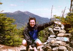 Here I add a few inches to the 4328' already there. The wind made standing up impractical. May 1998 Randy, me, and Karen Willcox on the summit of Jackson. July, 1997. Here is a peak-bagger shot of Randy, Laurie Nazzaro, and myself on top of Lafayette, with the Pemigewasset Wilderness in the background. October 1996.