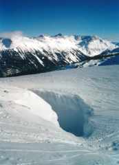 of steep, untracked powder on the Blackcomb Glacier headwall.