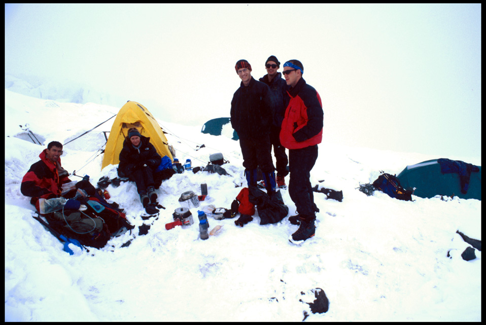 Mike traversing Interglacier. For most of us this was the first time on a glacier, though we had practiced before. The word crevasse did evoke a bit of apprehension, but on Interglacier our worries soon faded. That is, until we got to camp Curtiss...