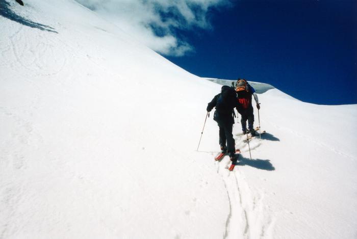 Climbing up the ridge between Lee Vining Creek and Fantail Lake. We didn't hang out under that cornice.