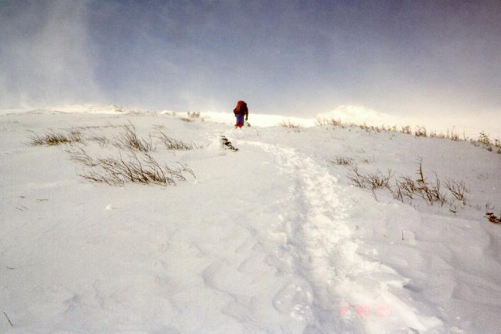 Turning back at the Lion Head, 10am, after winds on the Alpine Garden made progress impossible. The observatory recorded winds of 102 mph with gusts to 120 mph at that time, with a temperature of -12oF.