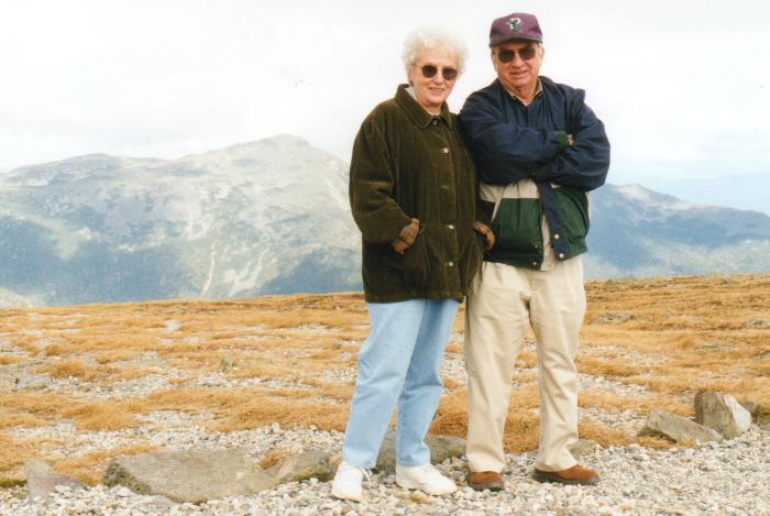 Mom and Dad pose in front of Mt. Adams on the Mt. Washington Auto Rd. October, 1999.
